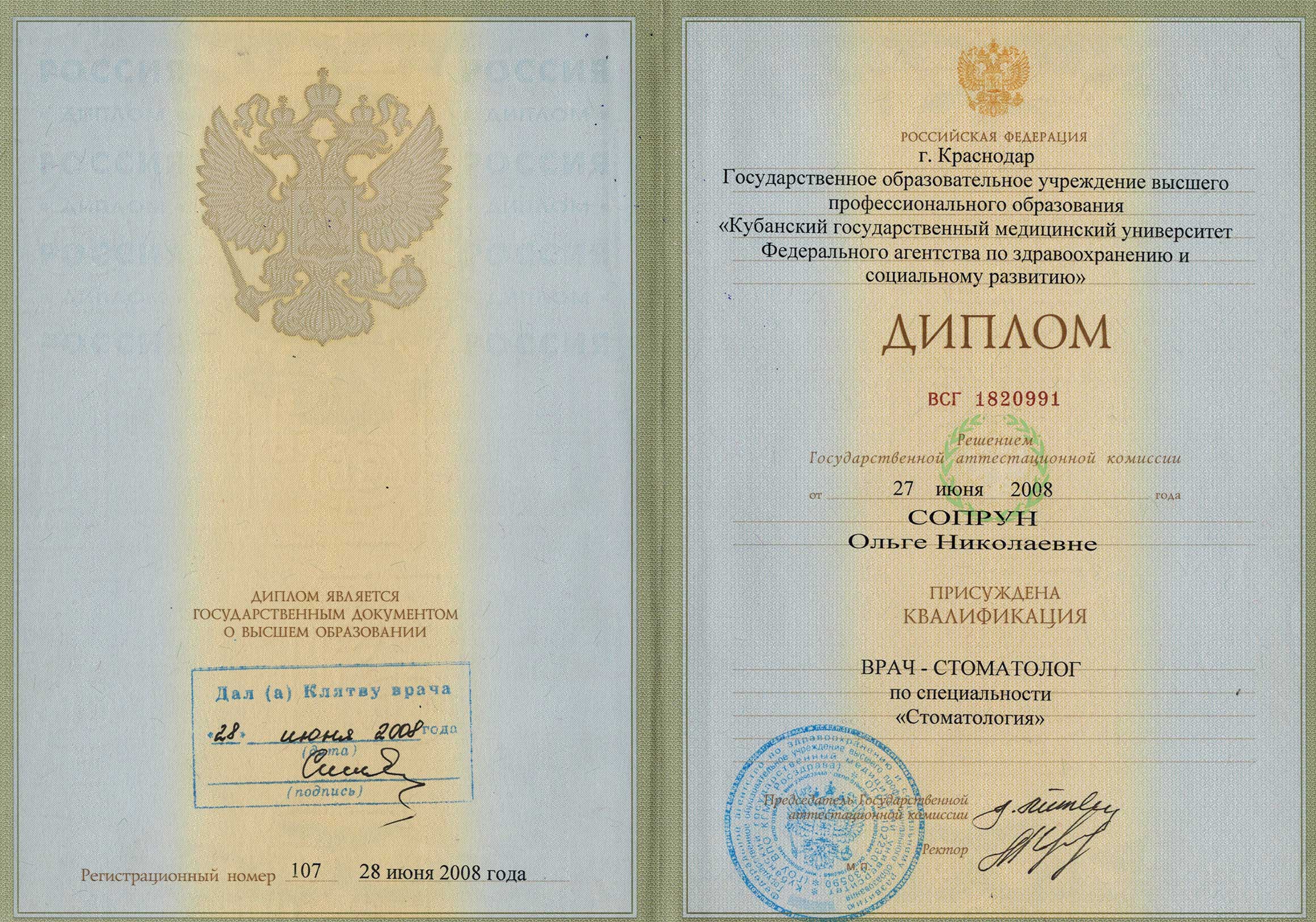 - 2008 Кубанский государственный медицинский университет. Стоматология. Базовое образование