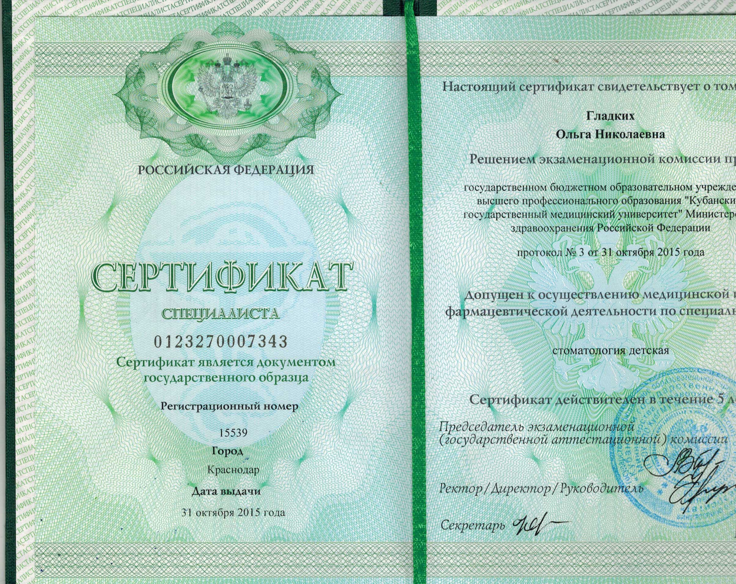 - 2015 Кубанский государственный медицинский университет. Стоматология детская. Повышение квалификации