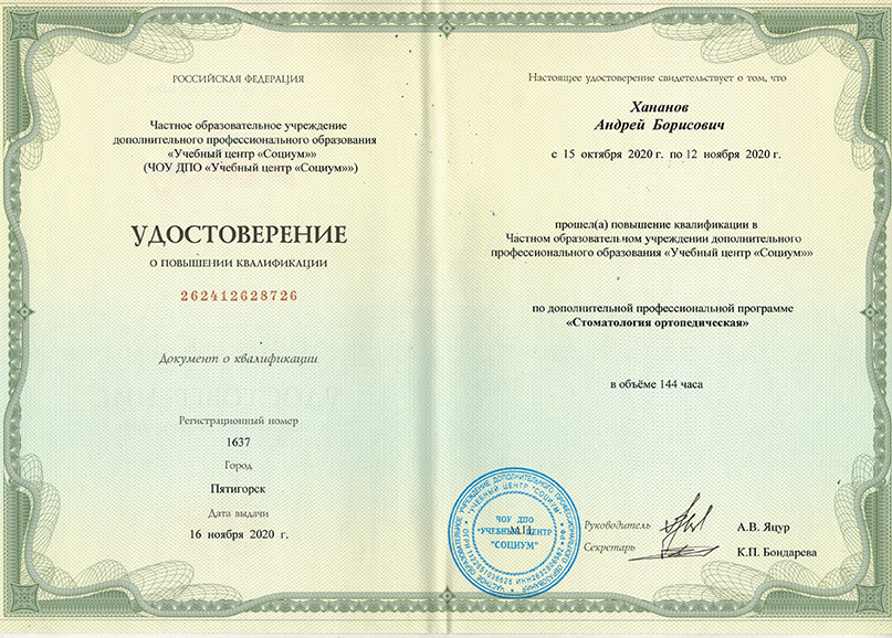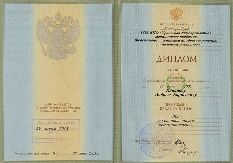 - 2005 Уральский государственный медицинский университет. Стоматология. Базовое образование