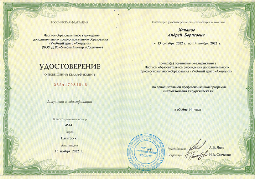 - 2012 Уральский государственный медицинский университет. Стоматология хирургическая. Циклы переподготовки