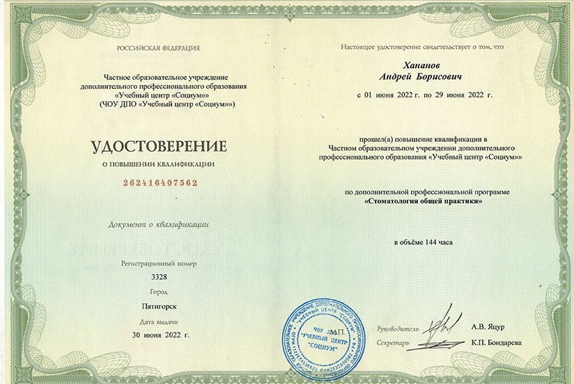 - 2006 Уральский государственный медицинский университет. Стоматология общей практики. Интернатура