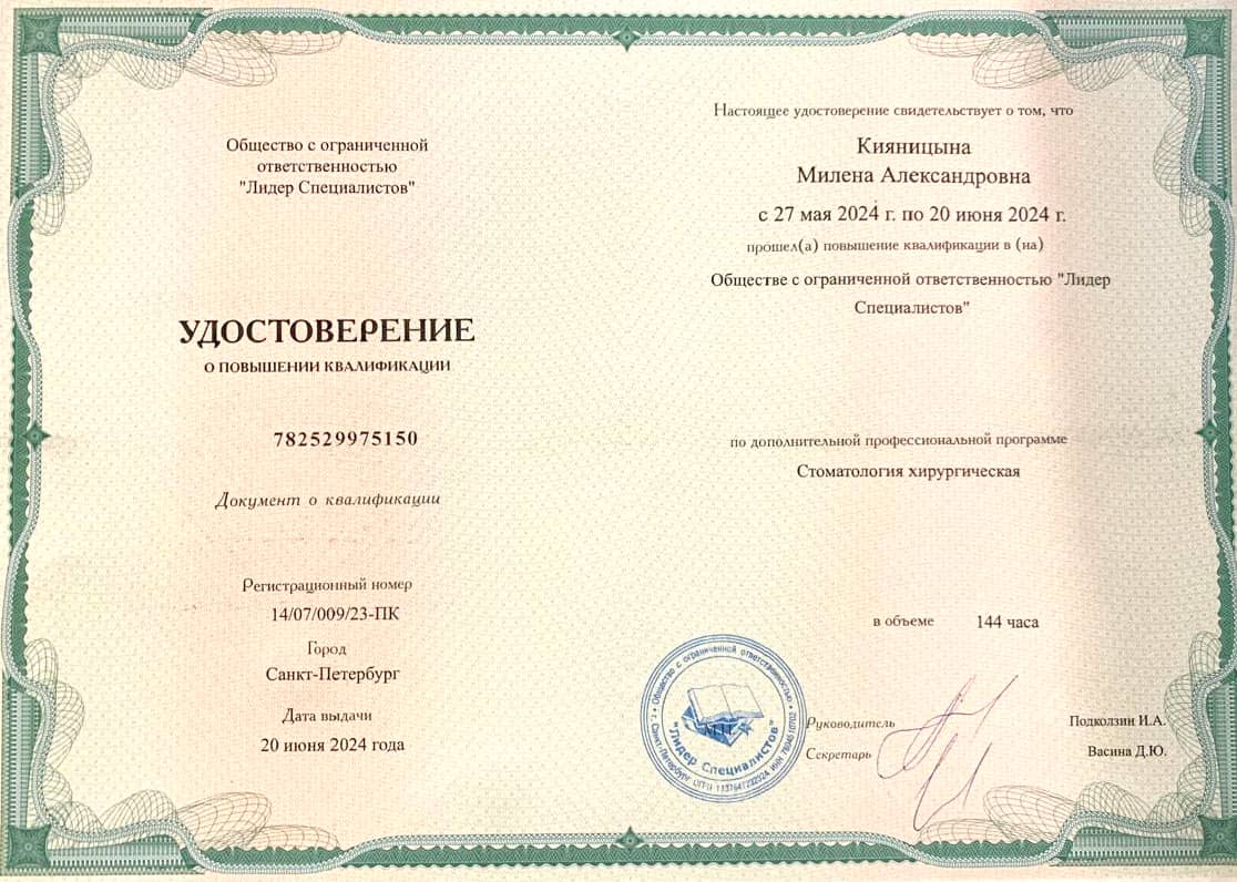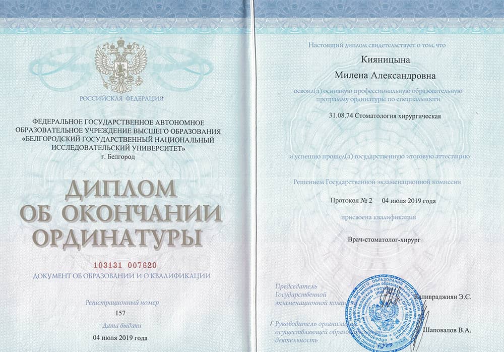 - 2019 Белгородский государственный национальный исследовательский университет. Стоматология хирургическая. Ординатура