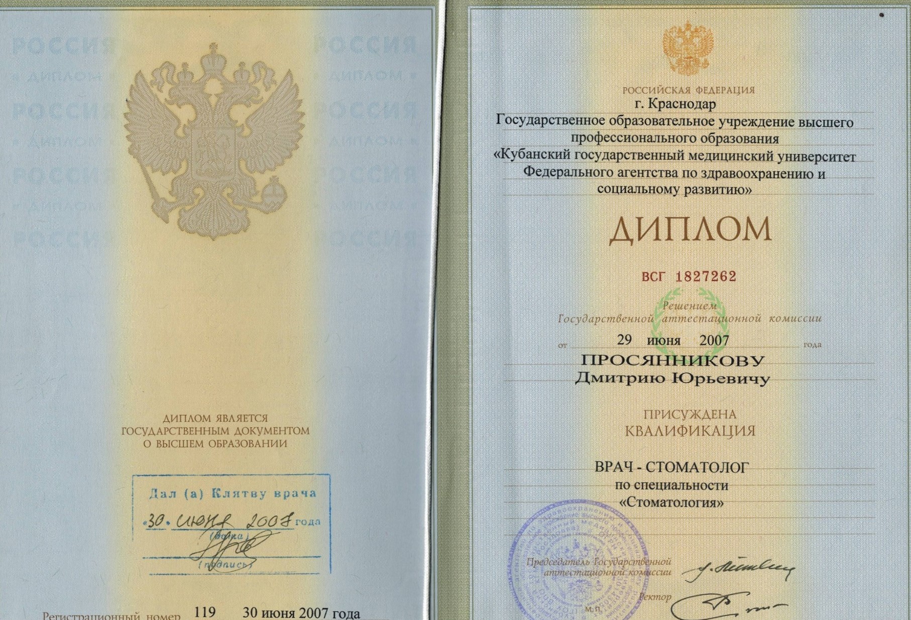 - 2007 Кубанский государственный медицинский университет. Стоматология. Базовое образование