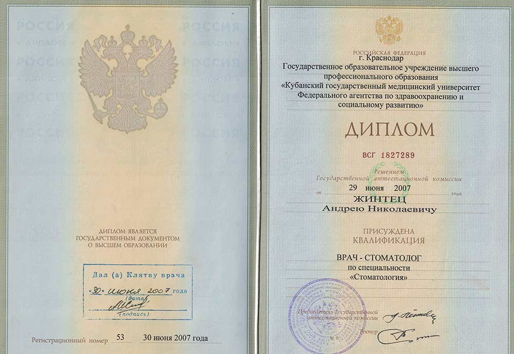 - 2007 Кубанский государственный медицинский университет. Стоматология. Базовое образование